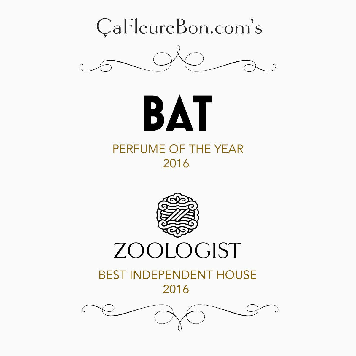 ÇaFleureBon.com, the number one niche and natural perfume blog in the world, has just announced their Best and Worst Fragrances of 2016. Zoologist Perfumes is greatly honoured to be the receiver of Perfume of the Year 2016 for Bat, and also Best Independent House of 2016! Thank you!